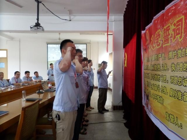 伴著雄渾的國歌聲,公司所有黨員干部全體起立,向黨旗致禮。隨后公司機(jī)關(guān)黨支部書記王子星宣讀了2013年預(yù)備黨員轉(zhuǎn)正以及接收2014年新預(yù)備黨員的決定。7名新預(yù)備黨員在黨委副書記李應(yīng)濤的領(lǐng)誓下,進(jìn)行了莊嚴(yán)的宣誓。隨著新黨員錚錚誓詞的落地和預(yù)備黨員代表發(fā)言完畢后。公司還特別邀請(qǐng)到十堰黨校黨務(wù)處李教授宣講以“踐行核心價(jià)值觀、發(fā)揮黨員先進(jìn)性”為主題的黨課。