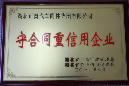 湖北正奧汽車附件集團(tuán)有限公司榮獲2014--2015年度省級(jí) “守合同重信用企業(yè)”榮譽(yù)稱號(hào),此次評(píng)選省級(jí)“守合同重信用企業(yè)”是由湖北省工商行政管理局和湖北省行業(yè)信用促進(jìn)會(huì)聯(lián)合評(píng)選并授予,此次獲獎(jiǎng)也是我公司連續(xù)多年獲得“守合同重信用企業(yè)”稱號(hào)。